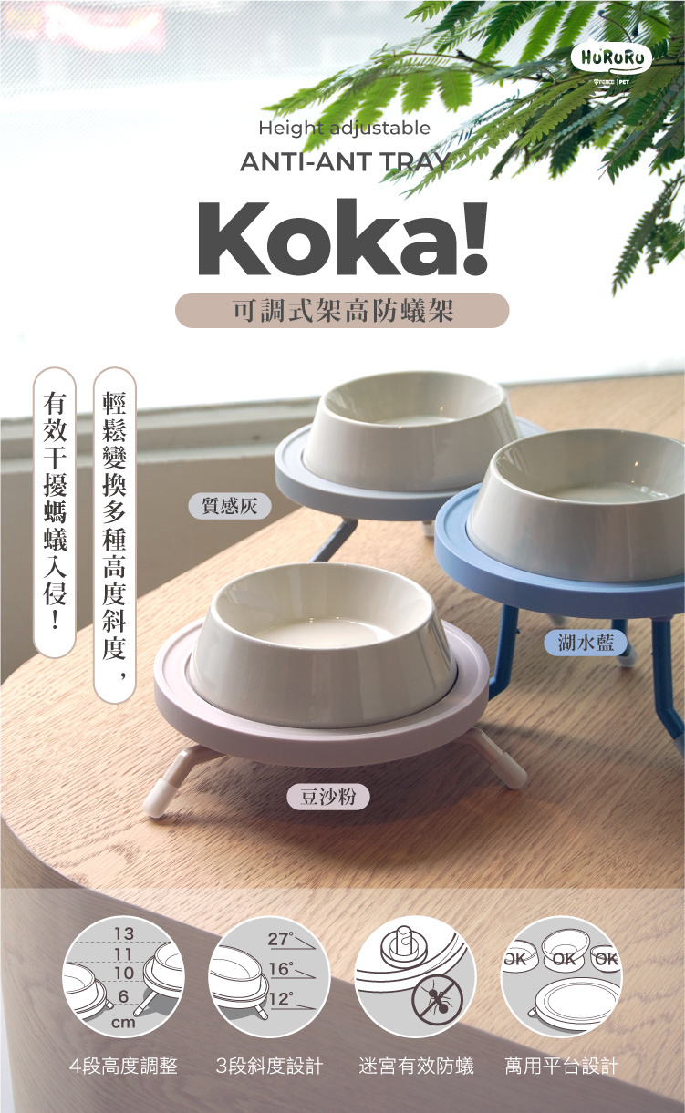Koka! 可調式架高防蟻寵物碗​  可調整高度、斜度可調整​