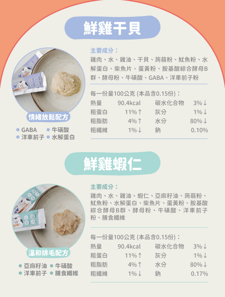 ● 多款機能|GABA情緒放鬆&洋車前子溫和排毛