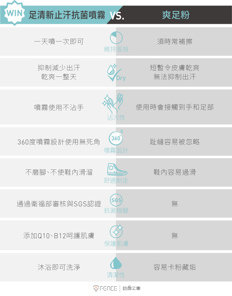 3. 請一定要在足部乾燥時噴,不要在出汗後使用,效果會不佳。