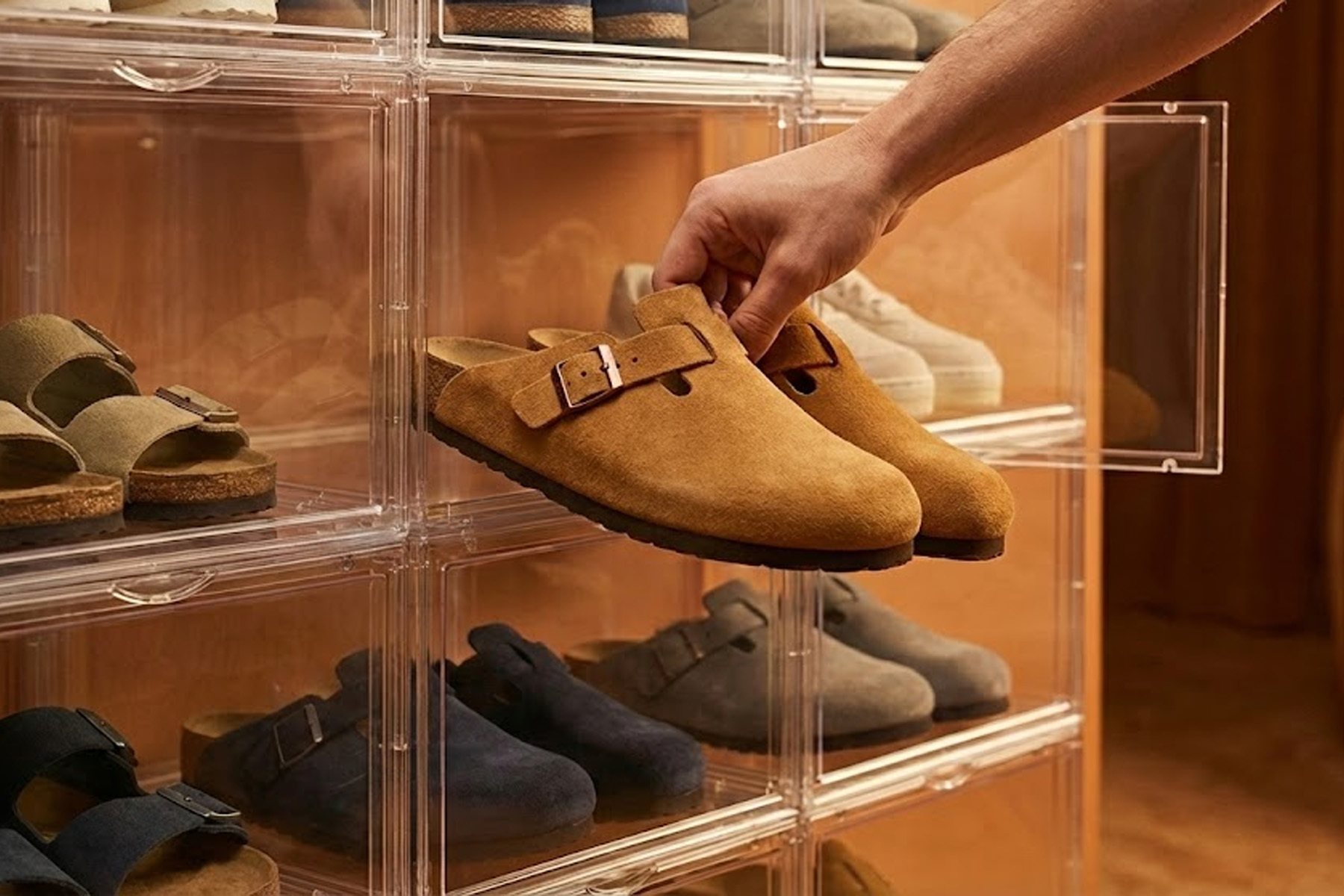 在台灣的高濕度環境下,收納方式很大程度決定了鞋子的壽命。應避免將麂皮勃肯長時間放在不通風的鞋櫃底層或貼地擺放。