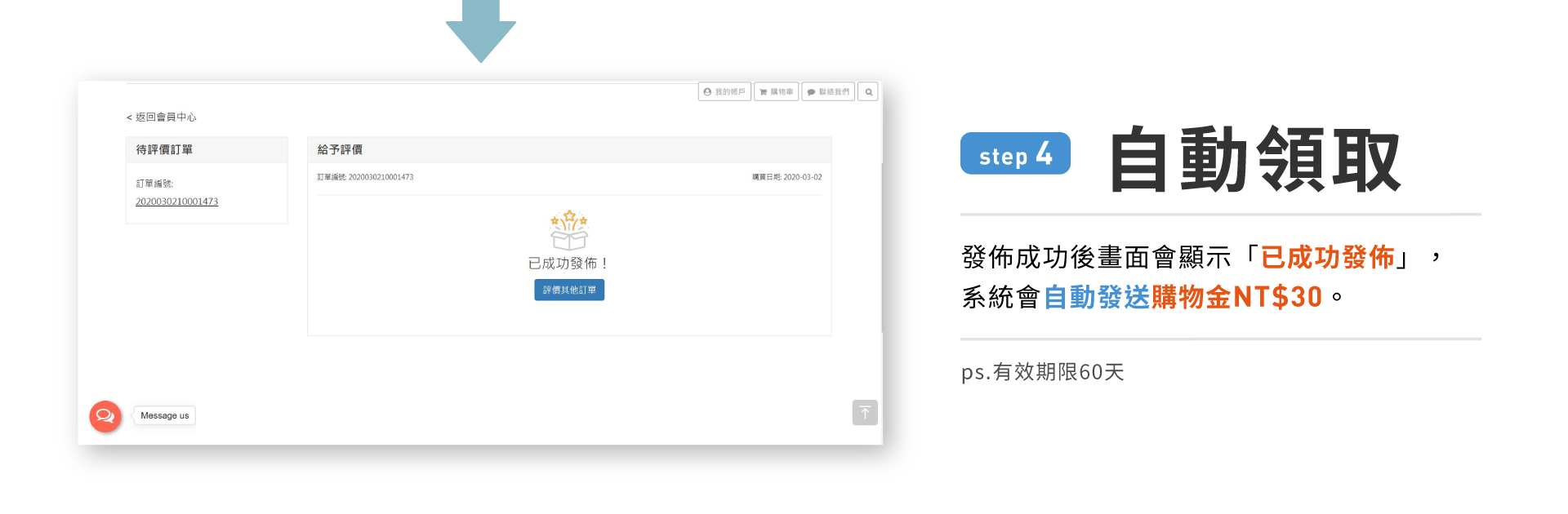 EX:購買$100元商品折抵 $12,剩餘購物金可於下次購物時繼續使用。