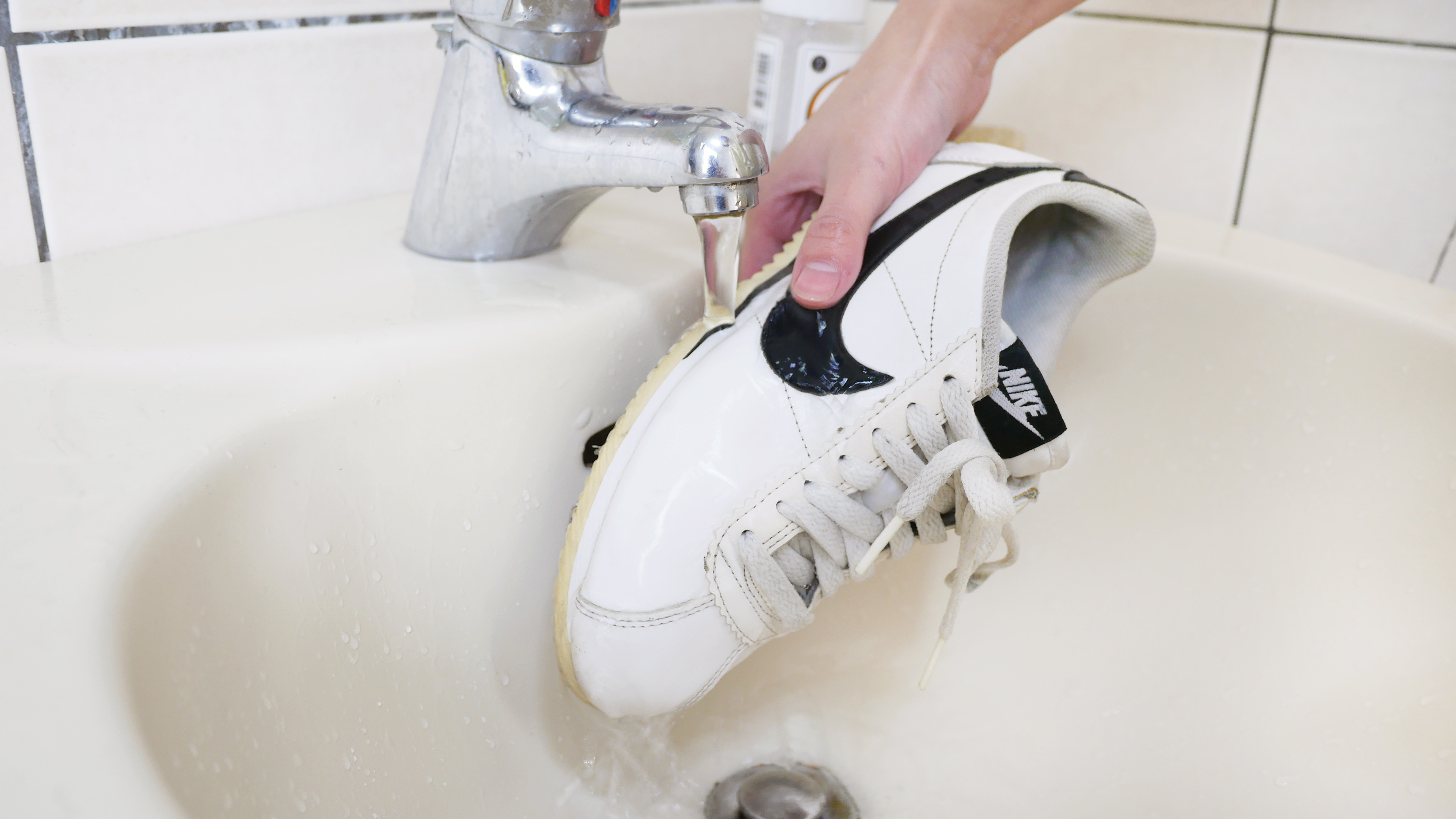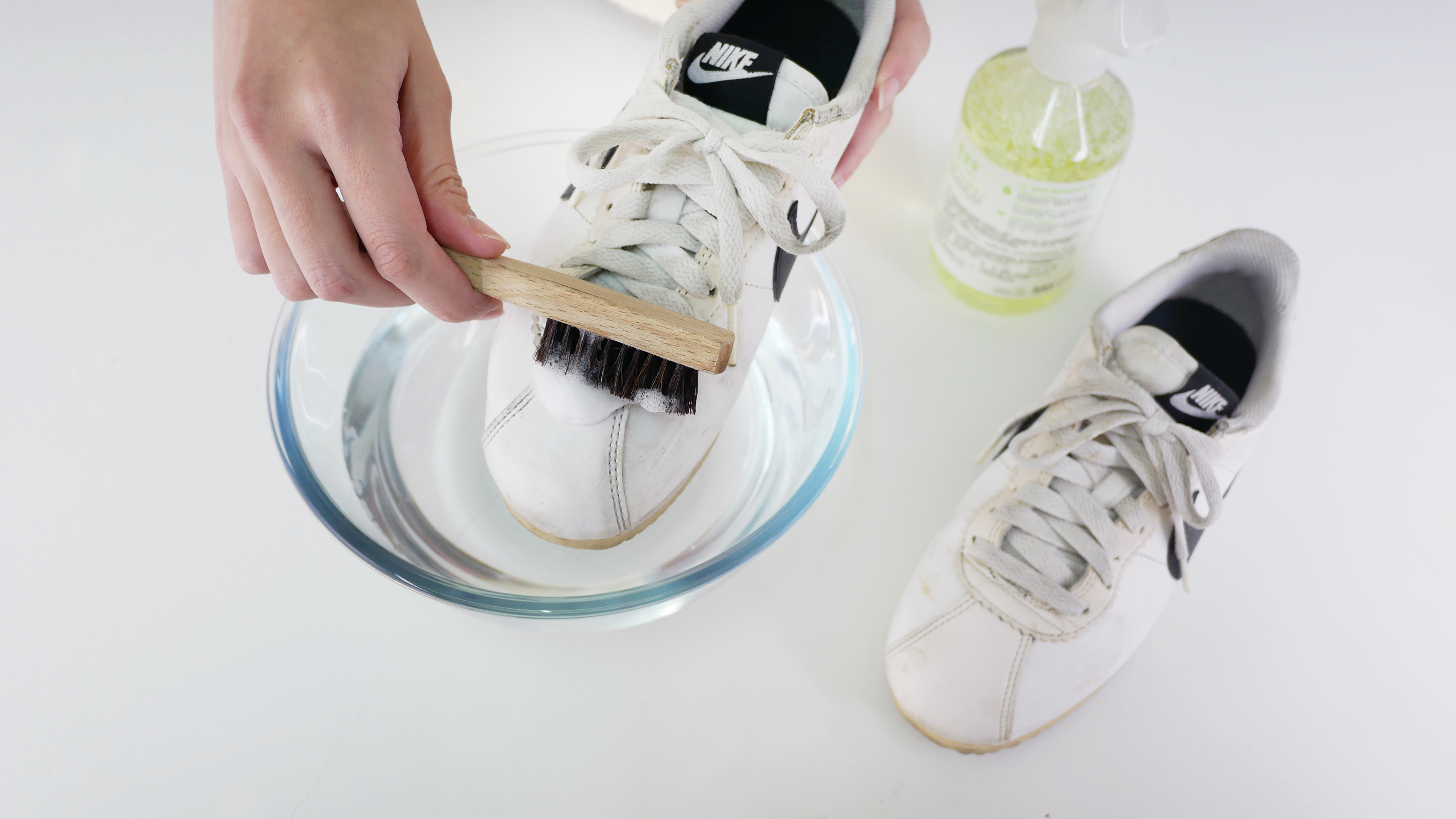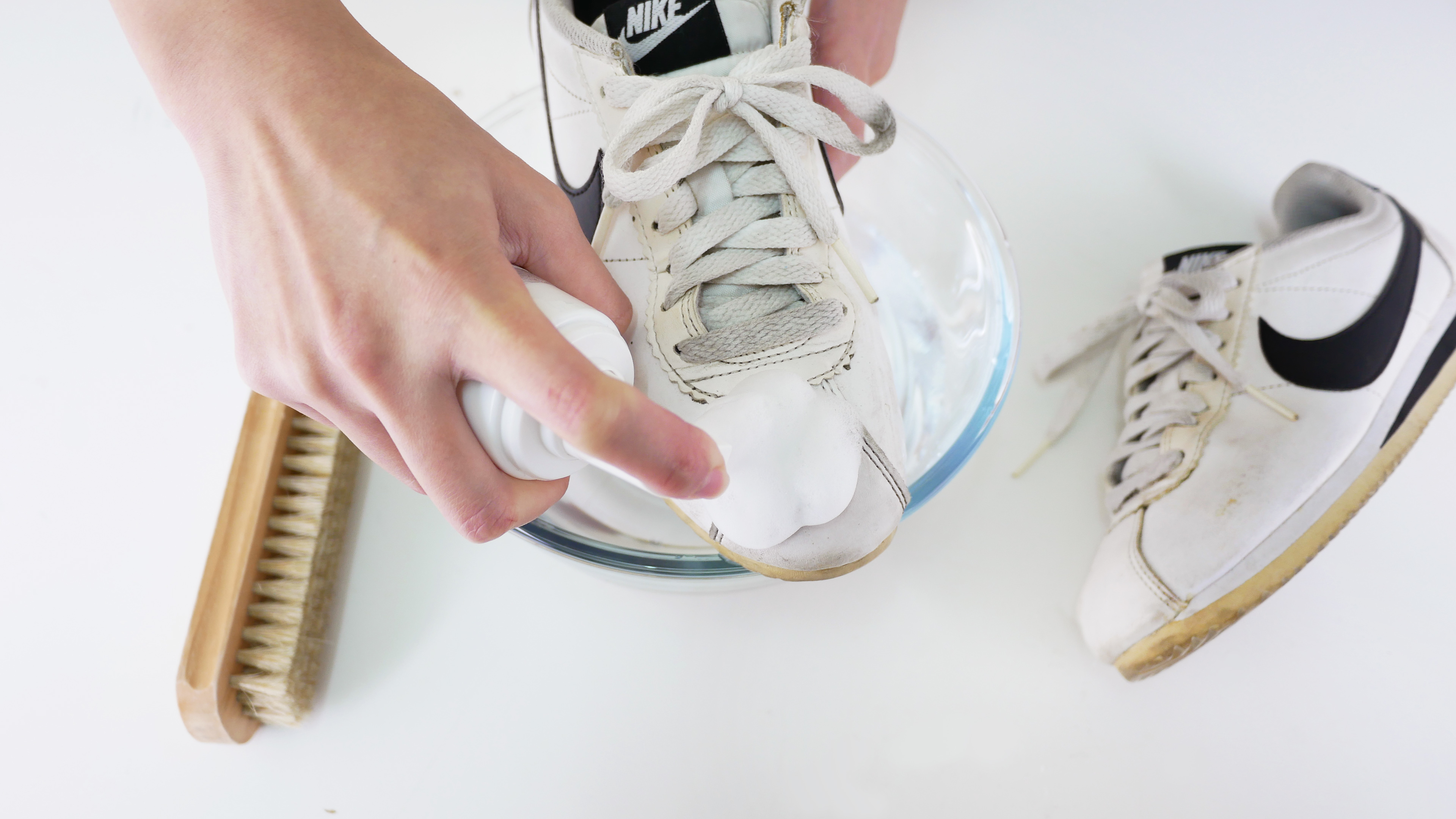 記得要沖洗乾淨,別把清潔劑殘留於鞋面上!