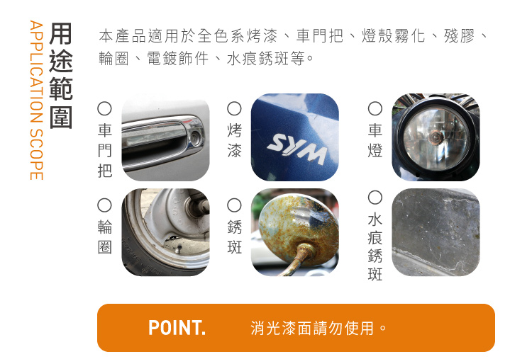 *若使用過粗的砂紙將會破壞烤漆表面。