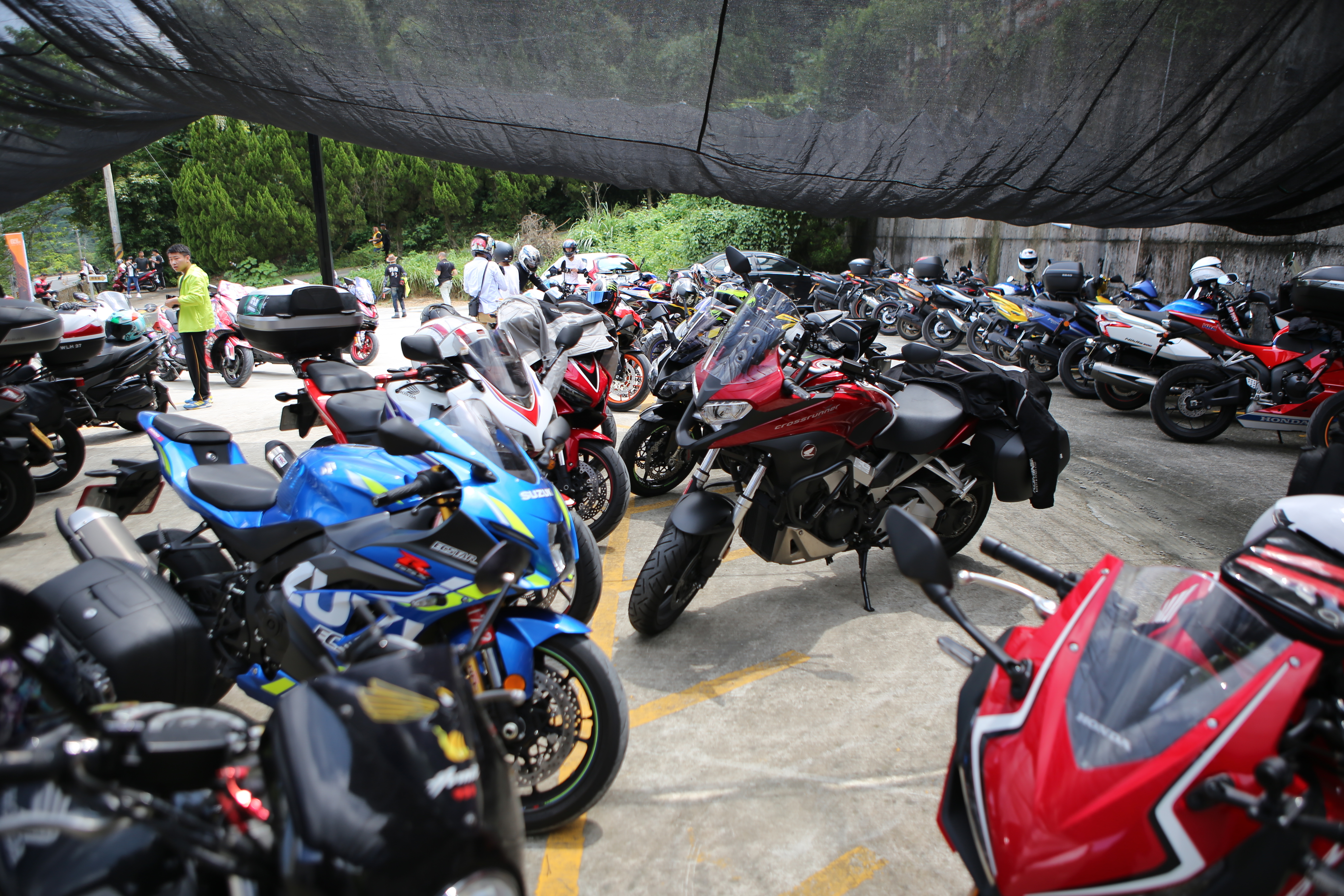 一輛一輛重機車接連駛來,熱血的氣息瀰漫著整個山區,而現場更是發放著限量紀念貼版,以此歡迎前來的朋友們。