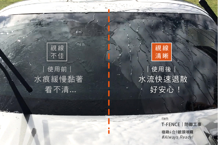 T-FENCE 極緻鍍膜 VS. 安全帽/後照鏡