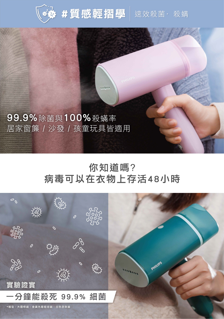 ● 99.9%殺菌+100%除螨,可以熨燙窗簾床單。​